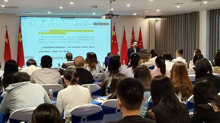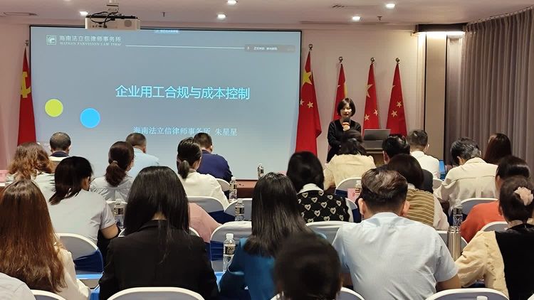 海南法立信律師事務(wù)所合伙人朱星星律師進(jìn)行勞動法律法規(guī)宣講和企業(yè)用工法律風(fēng)險防范講解。從常見勞動關(guān)系風(fēng)險隱患及防控、勞動糾紛調(diào)解方法及技巧、典型案例解析等方面,為廣大用人單位和勞動者講解勞動保障法律法規(guī)。在源頭上幫助企業(yè)化解矛盾、構(gòu)建和諧勞動關(guān)系。