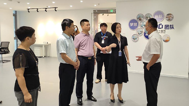 園區(qū)總經(jīng)理劉昕暉、副總經(jīng)理丁鑫曼帶領(lǐng)管理團隊,對周威局長一行的到來表示熱烈歡迎。在基地負責人的指引下,周威局長一行來到創(chuàng)新創(chuàng)業(yè)孵化基地進行實地考察,先后參觀了眾創(chuàng)空間、多功能直播間、文化展示墻等區(qū)域,同時詳細了解了基地服務內(nèi)容、配套建設(shè)、入駐企業(yè)(團隊)的項目運營、創(chuàng)業(yè)成果、獲得榮譽等情況。